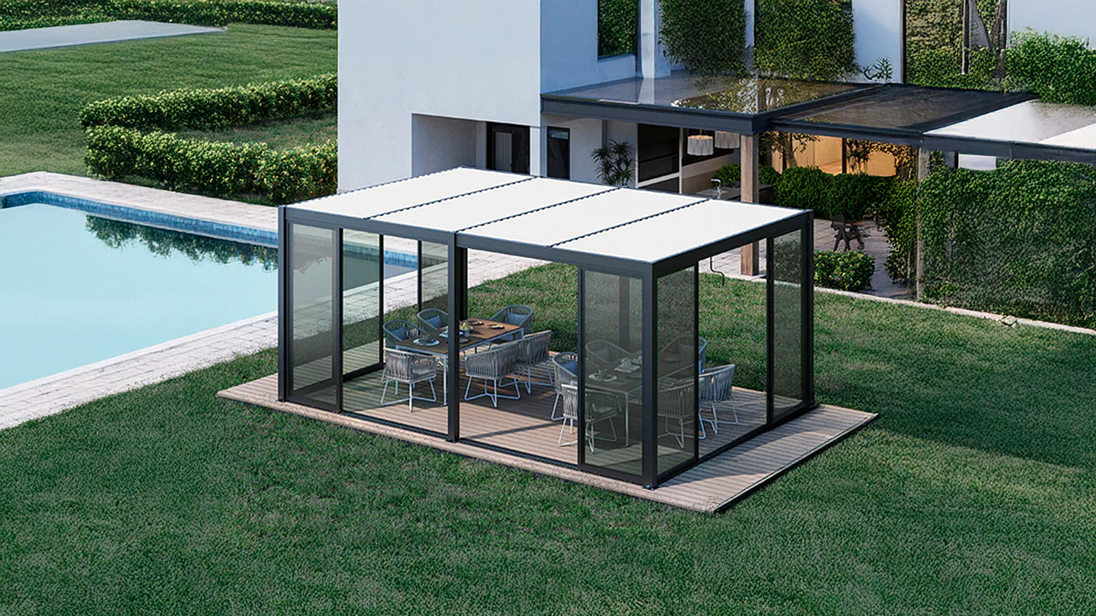 Bioklimatisk pergola Paviljong San Pablo Alu+, 4x5,8m, Vit